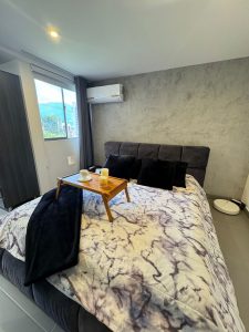 🏠 Espacios: Cocina y sala abiertas, balcón con vista a la naturaleza, segunda sala, habitación principal con baño privado y aire acondicionado.